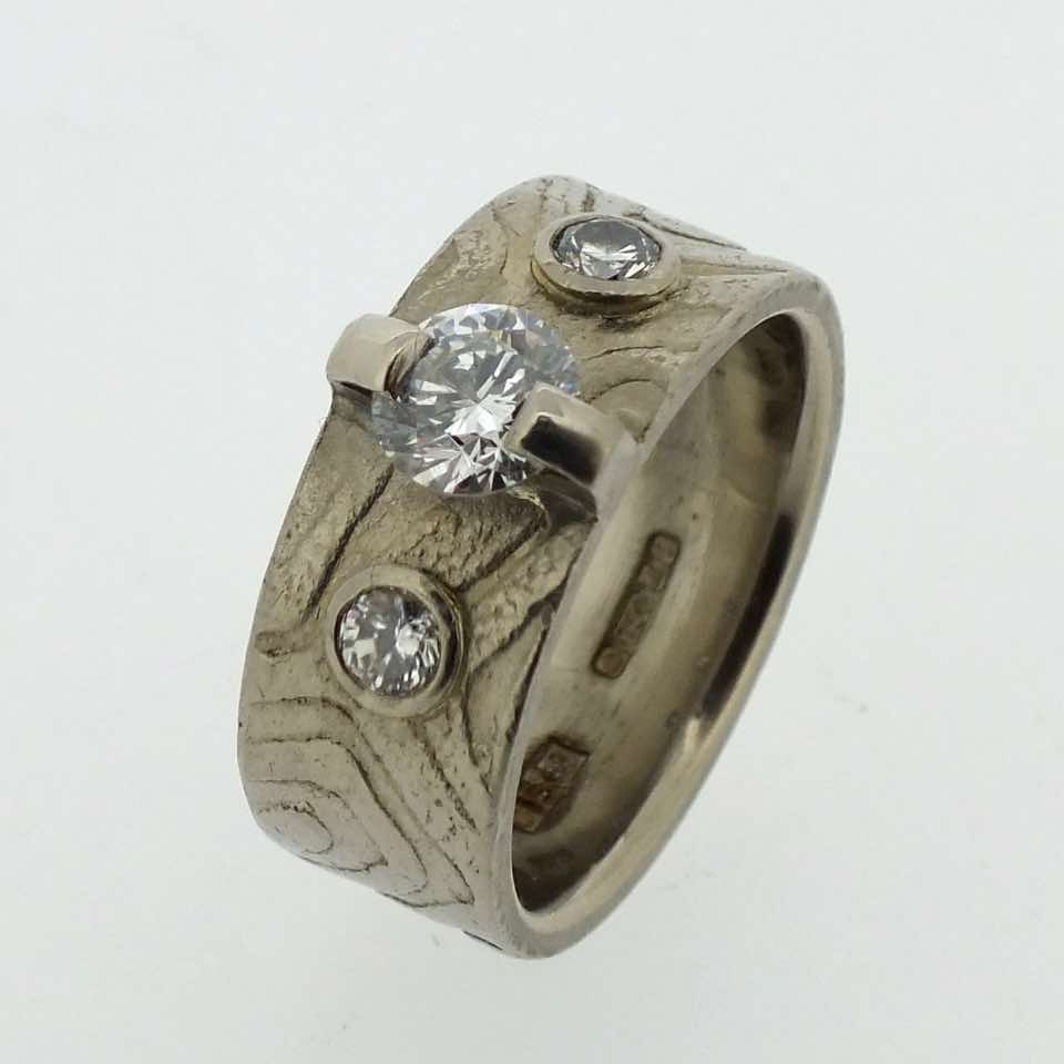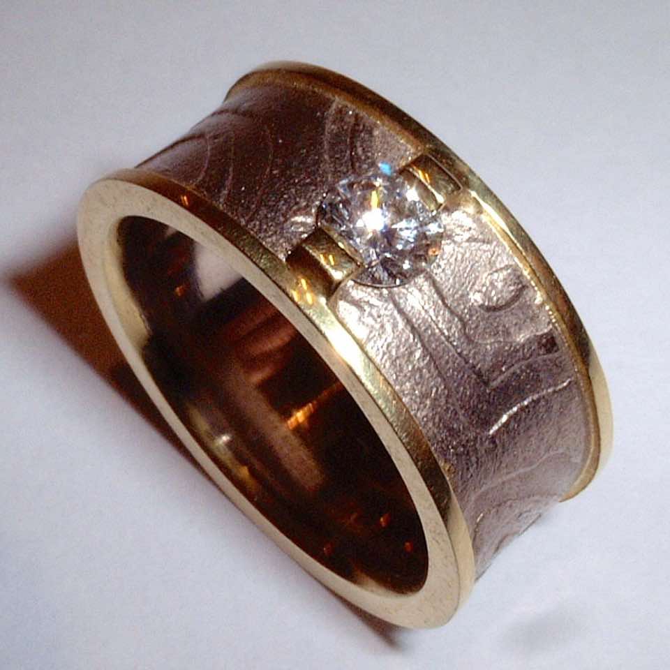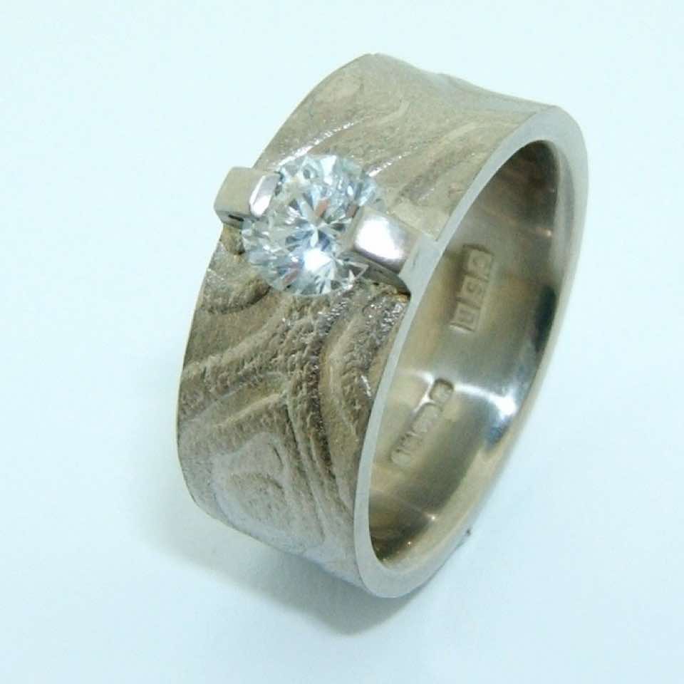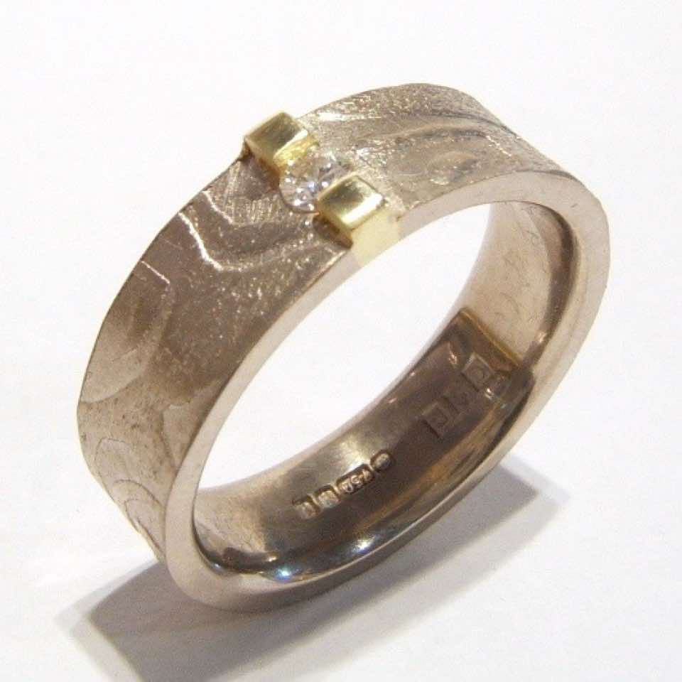 While Craig specialises in mokume gane jewellery, he also makes rings in single metals such as white gold, yellow gold and platinum. This gallery shows some commissions Craig has undertaken over the years. Please contact us if you would like any further information about these designs.