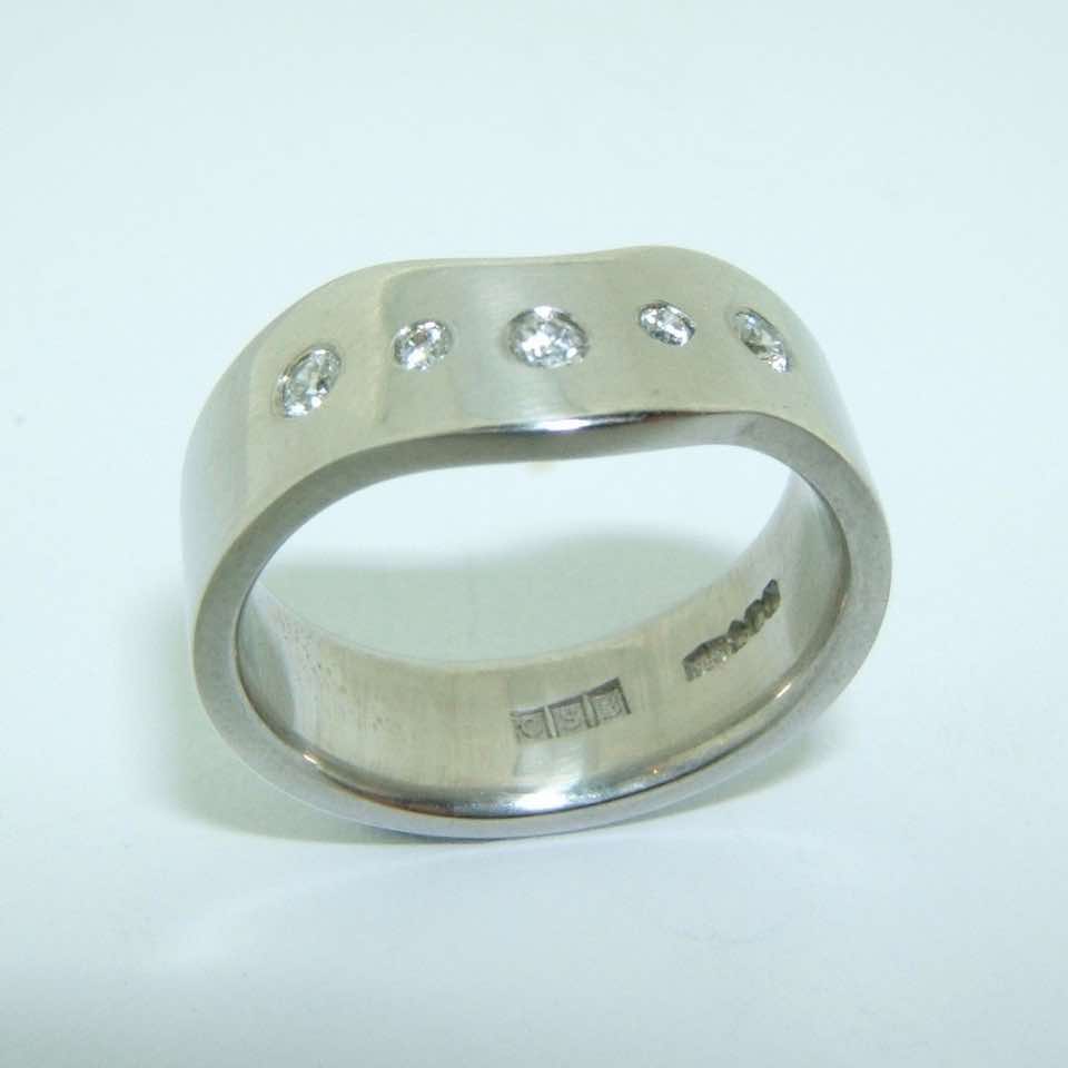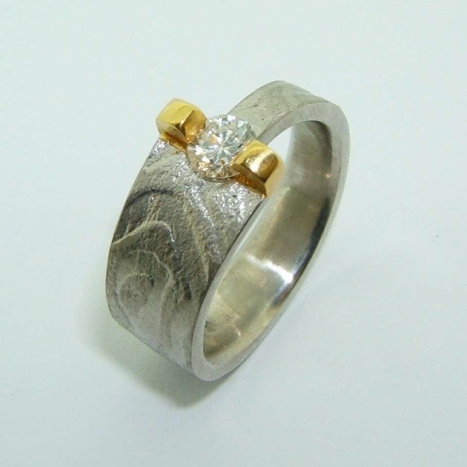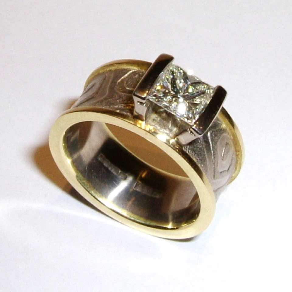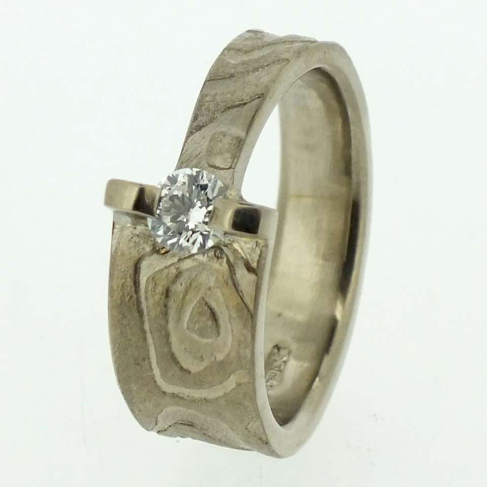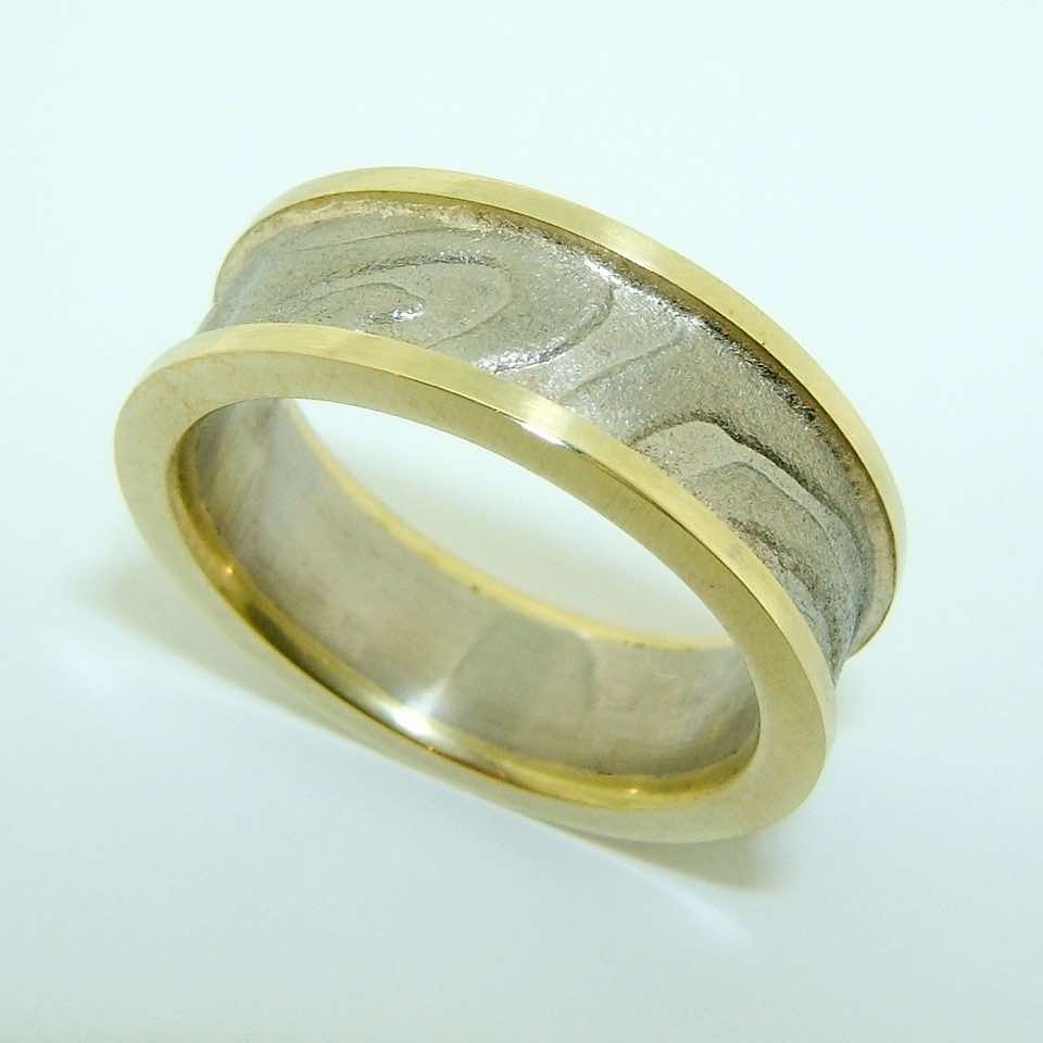 While Craig specialises in mokume gane jewellery, he also makes rings in single metals such as white gold, yellow gold and platinum. This gallery shows some commissions Craig has undertaken over the years. Please contact us if you would like any further information about these designs.